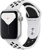 ساعة ابل Nike سيريس 5 Gps 44 ملم هيكل فضي من الالمنيوم و سوار نايك الرياضي لون اسود Amazon Ae