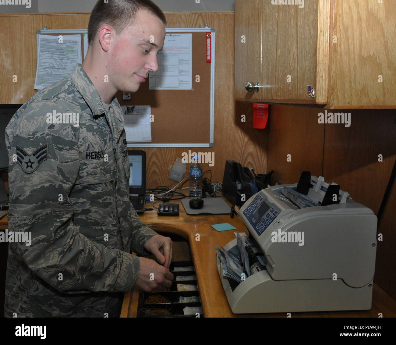 Senior Airman Bryan Hersey 379th Expeditionary Comptroller Squadron Cashier From Lompoc Calif Counts Qatari Riyal While Working Inside The Cashier Cage At Al Udeid Air Base Qatar Jan 24 Hersey Said One